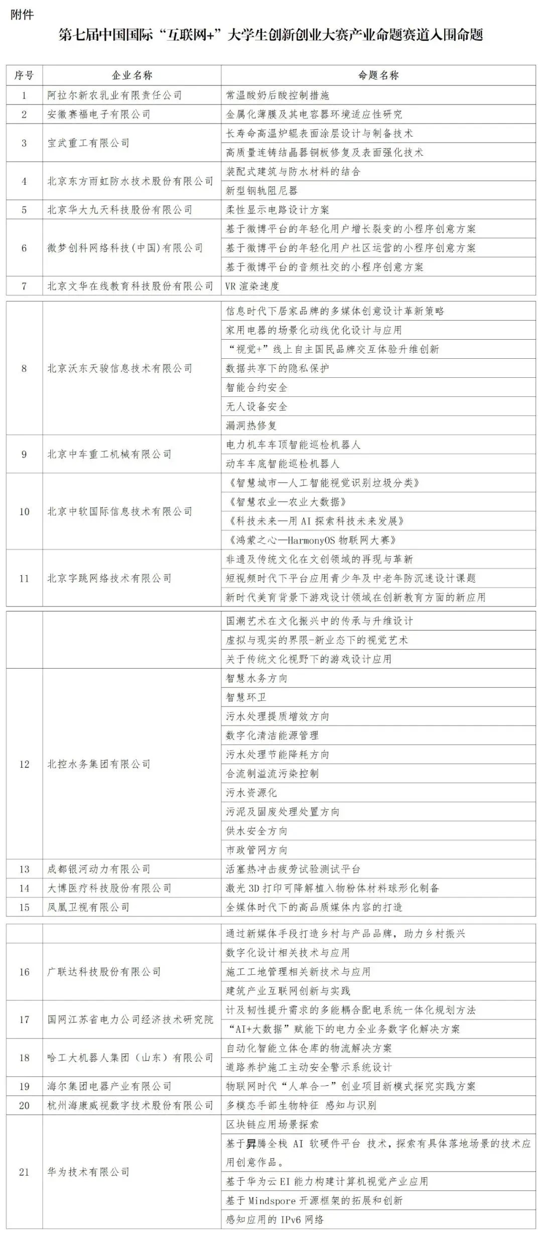 2.关于公布第七届中国国际“互联网”大学生创新创业大赛产业命题赛道入围命题的通知(含入围命题)